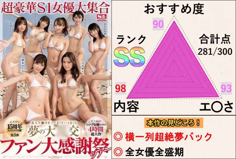 個人的MVPは天馬ゆいさん&波多野結衣さん。